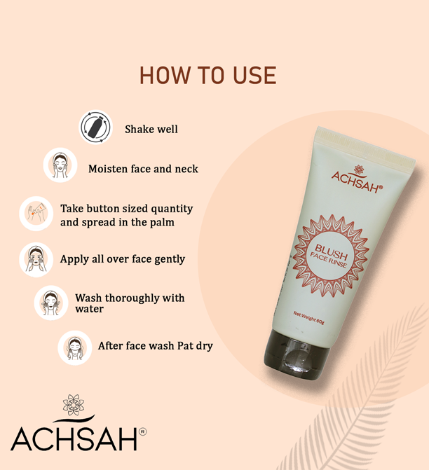 ACHSAH Blush Face Rainse | Dry Skin With Hyaluronic Acid | Hydrating | Sulphate Free | Non- Drying | Face Wash For Women & Men | Anti Ageing Face Wash | Reduces Blemishes | Blush Face Rainse | Cream based Exfoliating Face Wash for All Skin Types